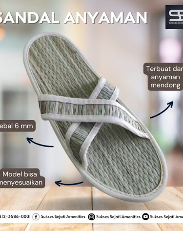 Penjelasan tentang produksi, bahan, dan pemasaran sandal hotel yang nyaman dan stylish.