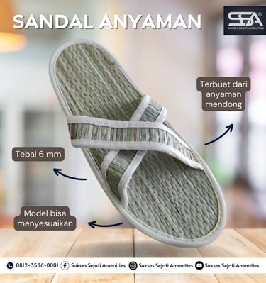 Kami adalah produsen sandal hotel berpengalaman, menyediakan berbagai model sandal custom untuk memenuhi kebutuhan hotel Anda dengan kualitas terbaik.